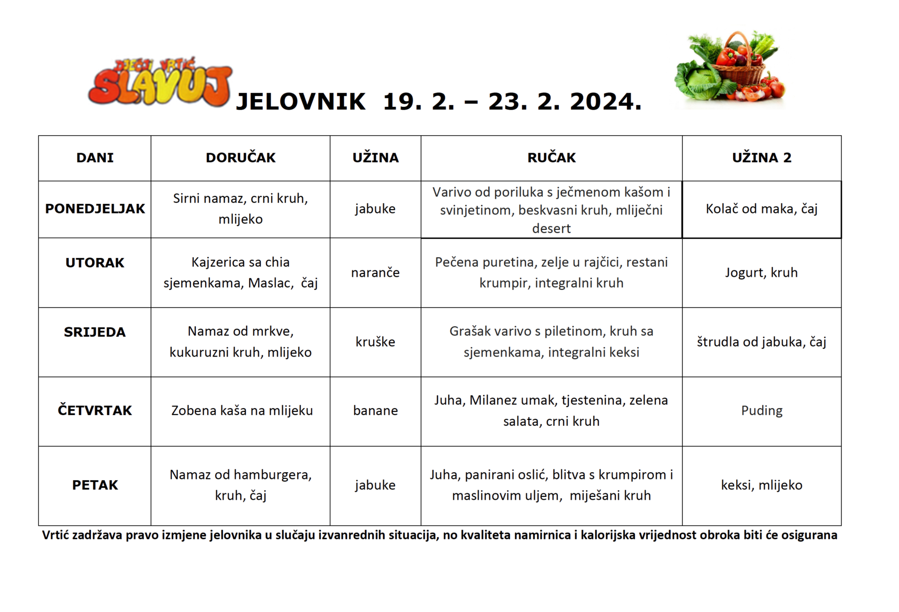 Najnoviji jelovnik