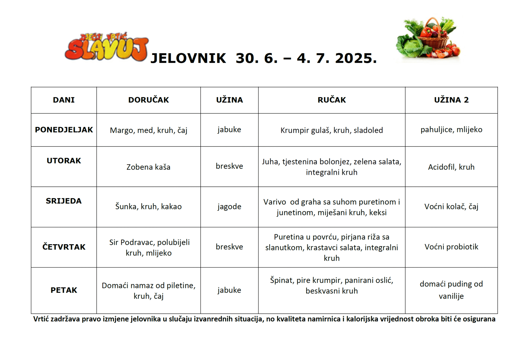 Najnoviji jelovnik